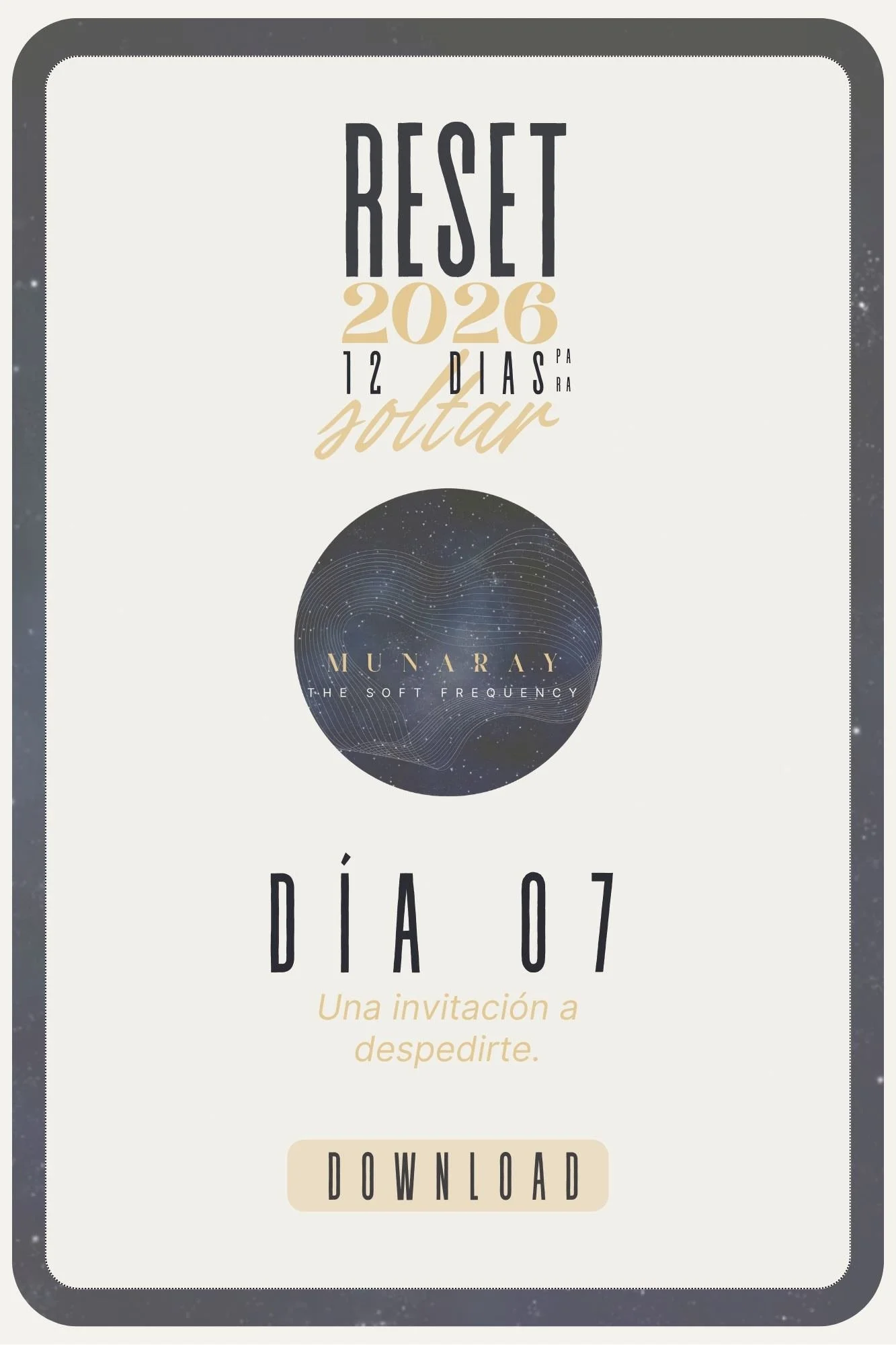 Las fiestas vienen con familia, viajes y agendas apretadas — por eso le estamos dando a RESET espacio para respirar. El ritual es a tu ritmo: empieza cuando quieras y continúa cuando puedas. Ya hemos publicado el Día 7 (11:11) como la primera gran liberación, y retomamos las publicaciones diarias el 3 de enero con el Día 8, para terminar en los primeros días del nuevo año.
